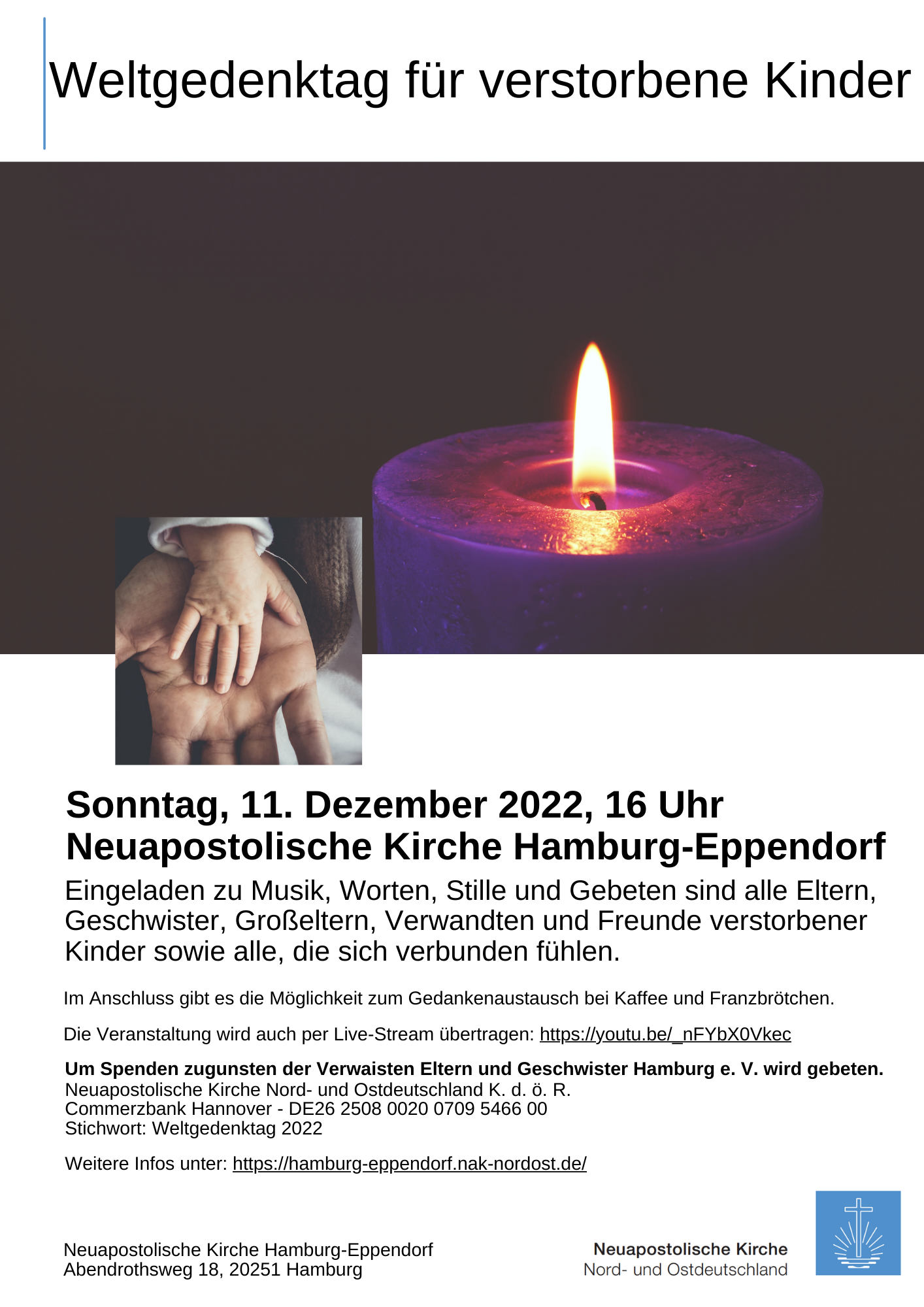 Zu diesem weltweiten Gedenktag findet am 11.12.2022 um 16 Uhr in unserer Gemeinde Hamburg-Eppendorf eine Veranstaltung statt, die geprägt sein wird von Musik- und Wortbeiträgen sowie Stille und Gebeten.